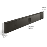 4. With a modern design, the XIO soundbar boasts a sleek, contemporary look that complements any space. The soundbar features a premium grille fabric and an aluminum top panel that not only enhance its visual appeal but also contribute to its durability and functional elegance, drawing inspiration from contemporary interior design and architecture.